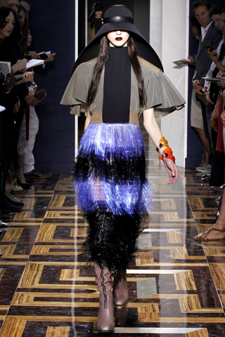 Editor's comments: These dresses are very Jetsons-esque in their cut and shape. Very futuristic. While there was no Lady Gaga on their runway this season, the clothes stood on their own pretty well, along with the help of favorite models like Joan Smalls, Abbey Lee Kershaw, Ruby Aldridge, etc.