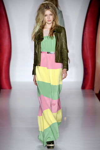 Editor's comments: A toned-down bump (take note, Snooki) made for the perfect accompaniment to the English label's soft colors and lady-like bags. I want all of the yellow patent pieces and the skirt in the second-to-last picture.